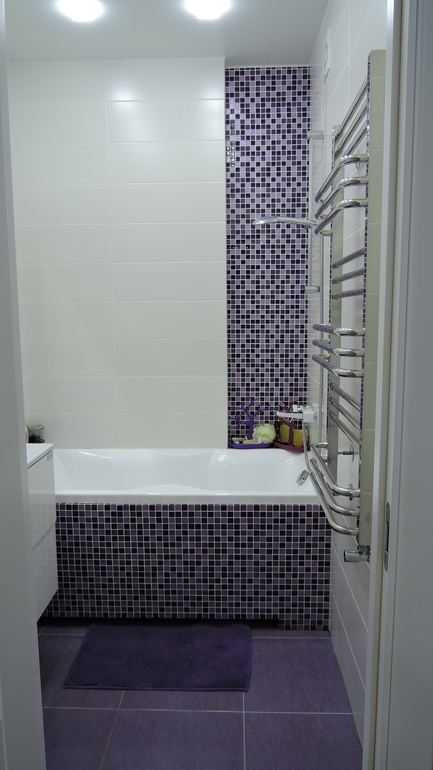 Интерьерное решение ванной комнатыПространство под ванной решили закрывать кафелем, теперь вопрос как правильнее его расположить. Я так поняла, что кроме ровной укладки, есть еще три основных варианта