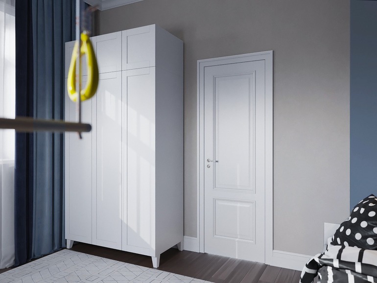 Дуб с белыми дверьми не сильно отличается от полностью белого шкафа.