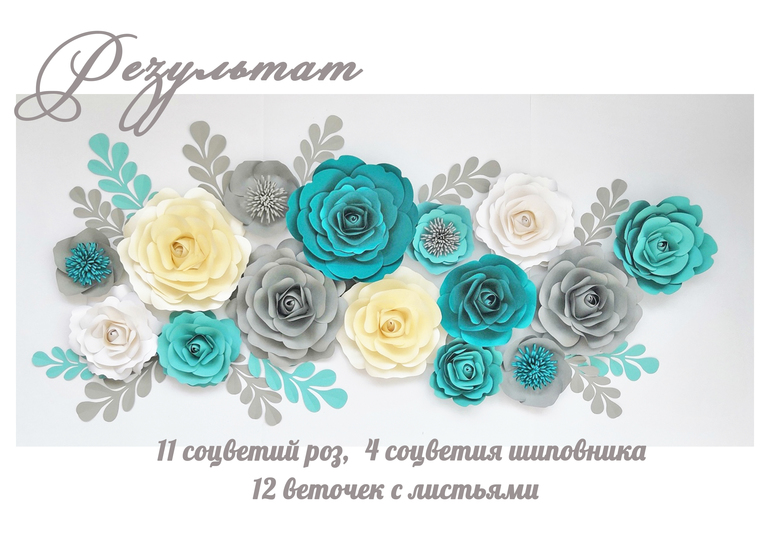 Интерьерные штучки.Заказ и результат. Большой цветочный сет из 15 соцветий. Основные цветы розы - перламутровые и матовый, + цветы шиповника. Размер сета 160 на 90см