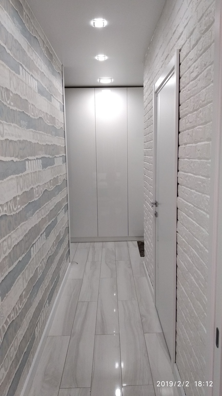 А теперь из кухни в коридор. Справа дверь в ванную и туалет, за углом справа входная дверь в квартиру. Слева проем в жилую часть. Прямо шкаф для верхней одежды и обуви.