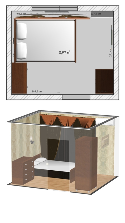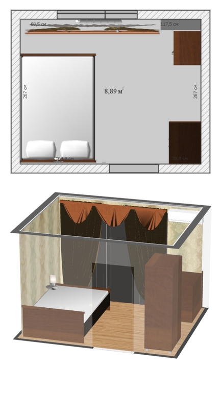 Интерьерное решение спальниСделала планировку спальни, два варианта. Какой считаете более удачный ?