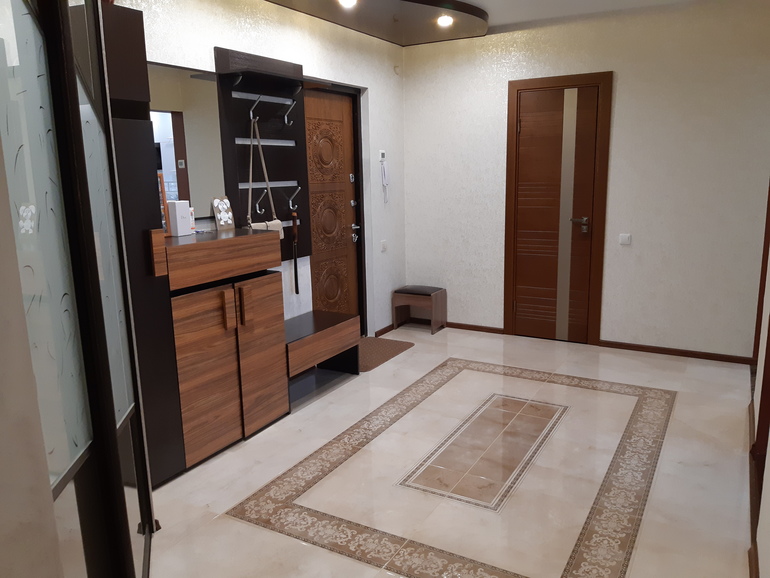 Поскольку прихожая просто грабительски ненужных размеров, мы часть отгородили под "гардеробную")) муж собрал две стенки, заказали двери, купили направляющие - и красота- я просто офигевала, сколько стоят похожие готовые композиции. Боковые стенки - творили красками)))