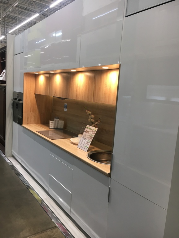 глянец белый прекрасное решение и в таких кухнях тоже, но конкретно в этом образце глянец смотрится не очень с этим матовым шпоном, чисто визуально