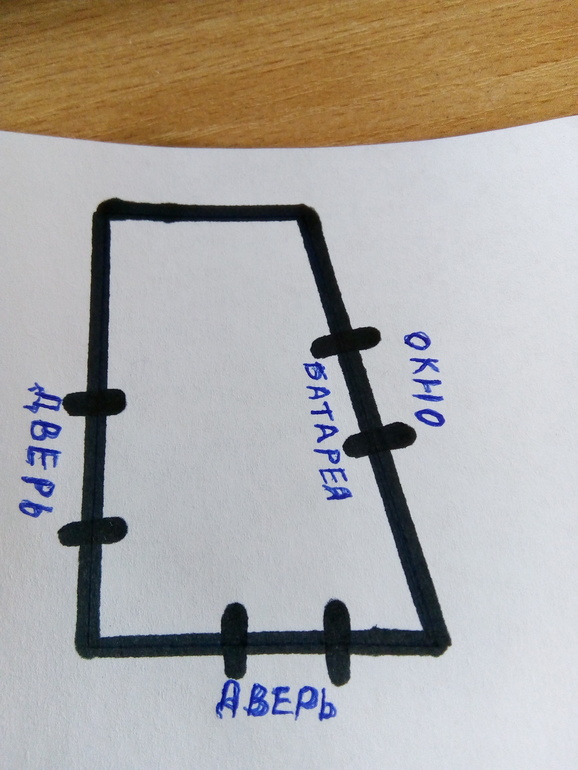 Интерьерное решение маленькой кухниДевочки, имеется кухня 6 кв.м. в форме прямоугольной трапеции с окном и под ним еще батарея плюс ко всему имеются две двери (вот такая картинка, извиняюсь за фото). Подскажите пожалуйста у кого есть такая кухня-как вы ее обустроили. Желательно конечно фото