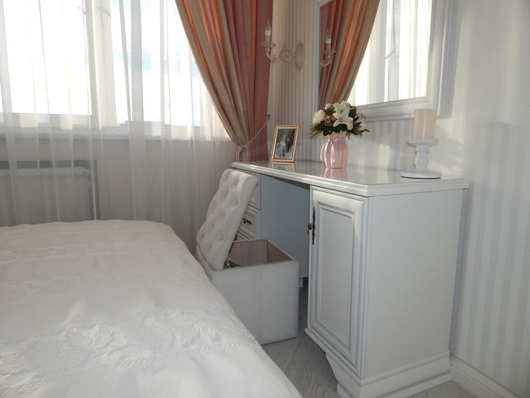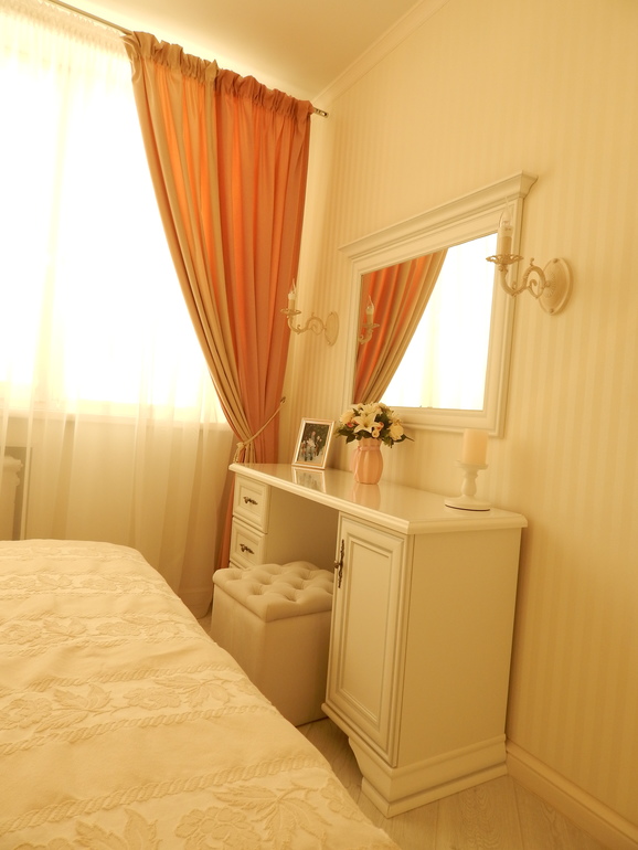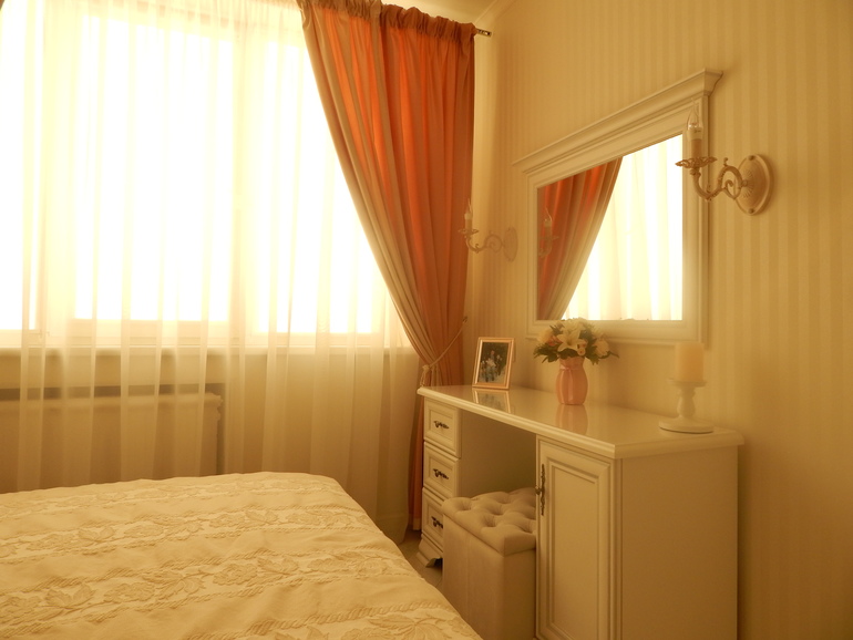 Отличная спальня!) Нежно, мило, светло, тепло и уютно. Вся квартира выдержана в одних тонах и одной стилистике) Про зеркала - я боюсь испугаться своего отражения в ночи, потому с ними очень осторожна))) Ну а Вы столько лет с этими зеркалами живёте- значит, ничего страшного!)