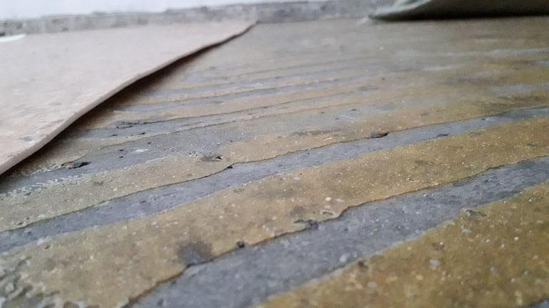 Всё о полах , стенах, потолках и материалах для нихВсем привет! Сняли линолеум, под ним этот желтый клей... как его изолировать, чтобы потом не выделял ничего? Заливать пол? Соскребать? Ничего не делать? Подскажите. Хотим ламинат класть.