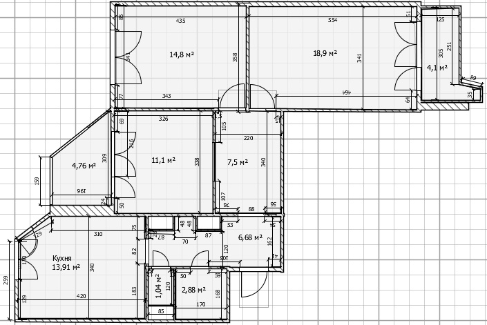 У подруги такая кухня по размеру. И у них отлично встала кухня там, большой стол со стульями и даже небольшой диванчик. А комнаты под спальни остались.