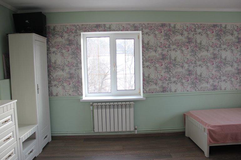Какая славная комната получилась! Очень уютно и светло! И мебель красивая! По поводу штор присоединяюсь к комментарию Нины. Согласна, что повесить надо обязательно; по цвету, как цветы на обоях, а может и в тон листиков. Или скомбинировать 2 полотна разного цвета.