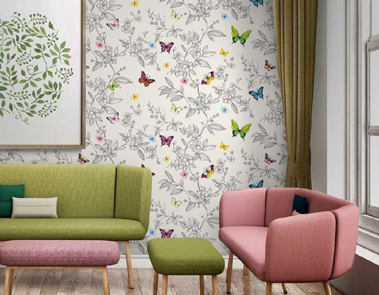 Голубые очень монотонные, потребуют активного украшения стен: картины, постеры, полки, светильники. Бабочки больше к детской ИМХО. Мне нравятся светлые обои с цветочным орнаментом в салатов-зелёных тонах, но может это уже не модно)