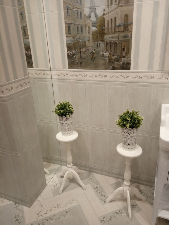 Что-то вас мотает сильно) То прованс, то сканди, а выложили вообще дворцовый. Если хотите именно такой - посмотрите коллекцию "Петергоф" керама Марацци. Но, имхо, смотреться будет хорошо, если у вас ванная такого же размера, как на тех фото, что вы выложили. В противном случае все стены будут заставлены и смотреться будет убого. На вашем месте я бы сначала определилась со стилем, уж очень противоречиво то, что вы хотите.