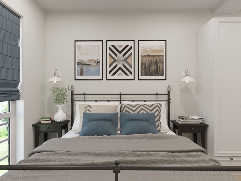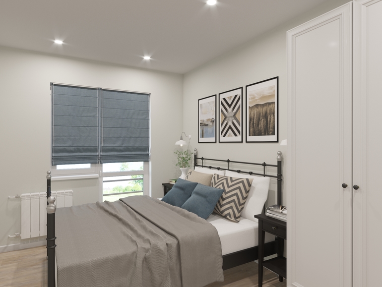 На втором этаже три спальни (8, 12, 12 кв.м.) и ванная.