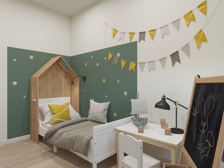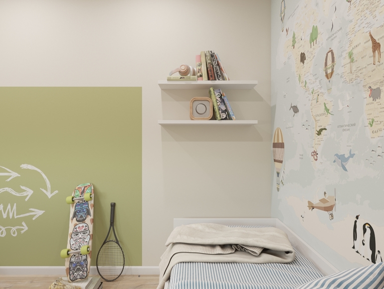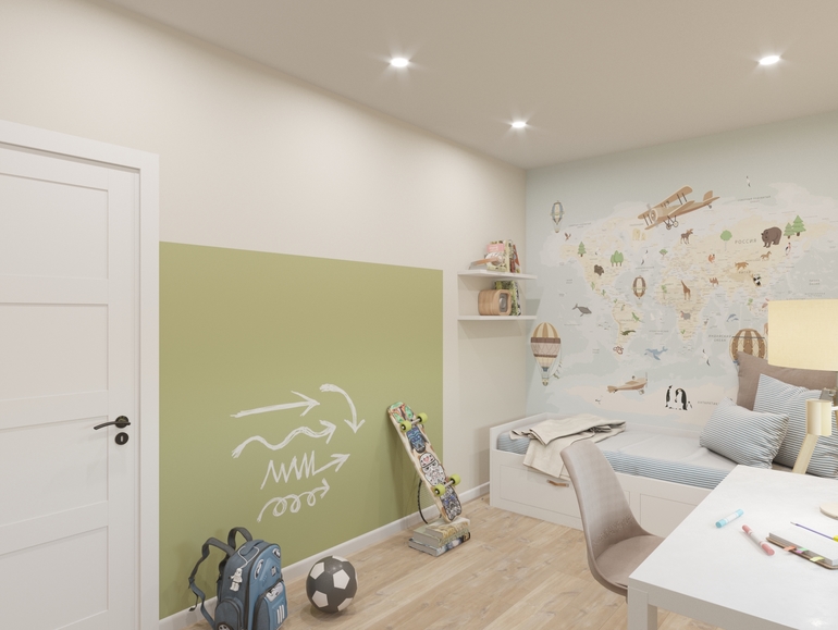 Зелёный квадрат на стене - здесь можно мелками рисовать.