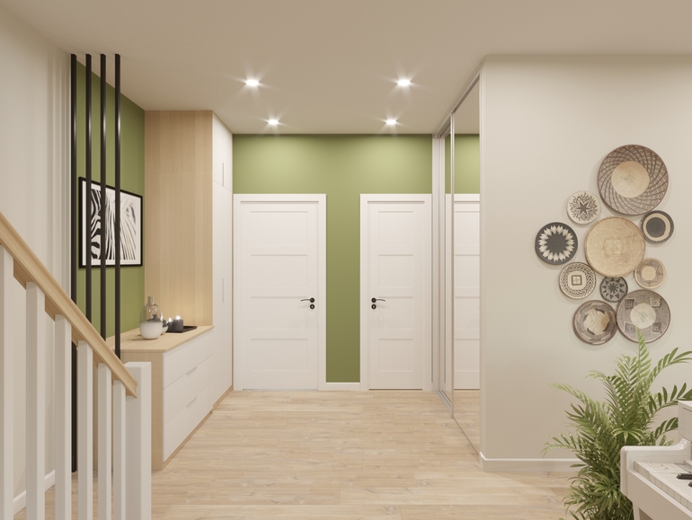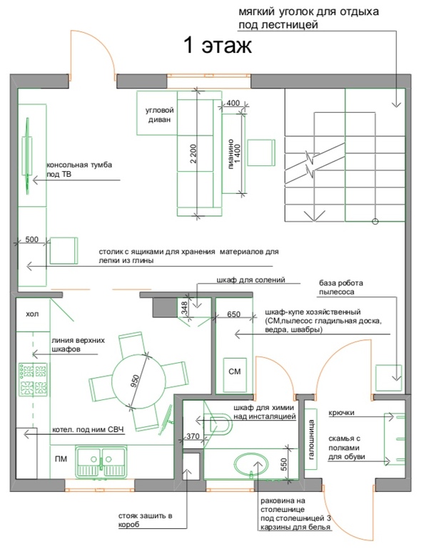 В частности, вот, поставили в прихожей комод и небольшой шкаф для верхней одежды. А ещё пришлось отказаться от мягкого уголка под лестницей, так как места там маловато. За то базу робота пылесоса туда прекрасно можно поместить.