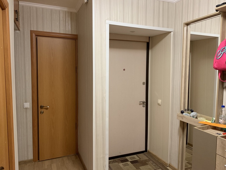 Двери ужасные не только в плане цвета. Просто это прям фанера фанерой ещё с прошлых хозяев. Обклеить их конечно можно, только это будут фантастические энергозатраты. Пока с такими поживём.