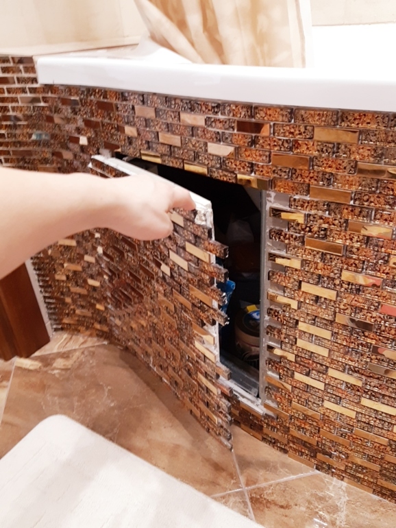 Одним из самых долгих моментов в ремонте ванной - был выбор мозаики для экрана - и мы его нашли! Причем, первым обратил внимание на нее - муж!