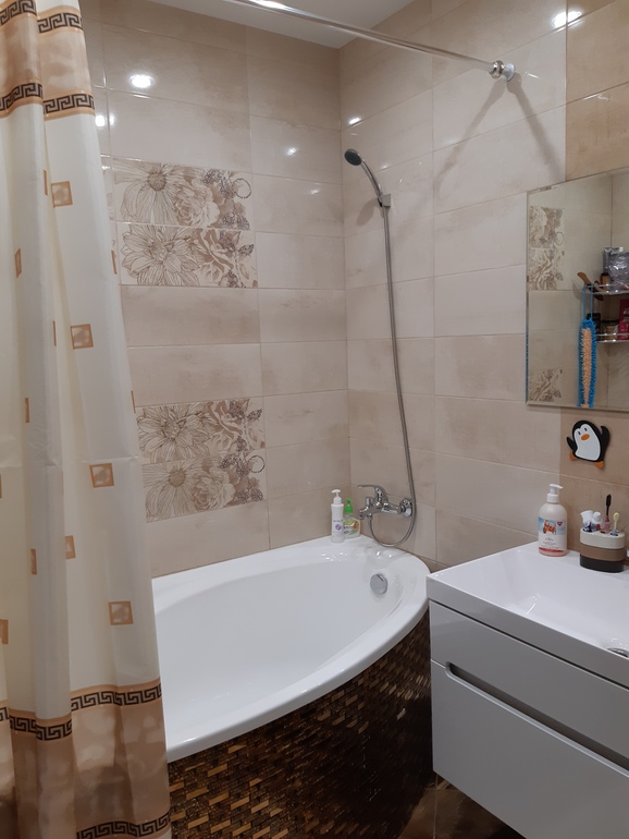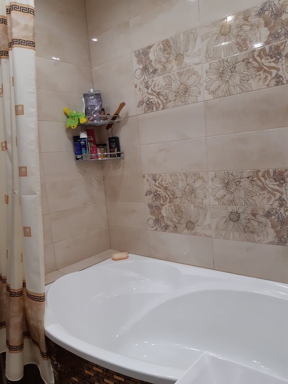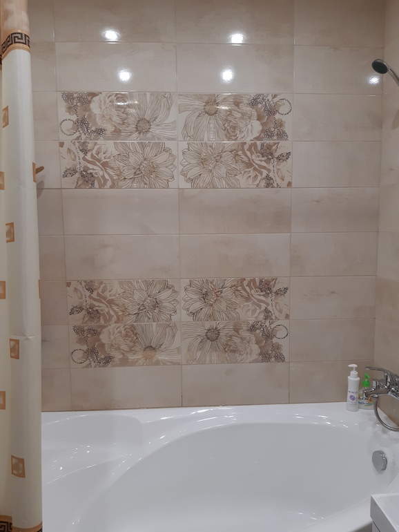 Но в общем, конечным результатом я крайне довольна . В восторге от плитки - трех вариантов одной коллекции - жаль, что фотография не передает зеркальность рисунка - выглядит просто бомбезно!
