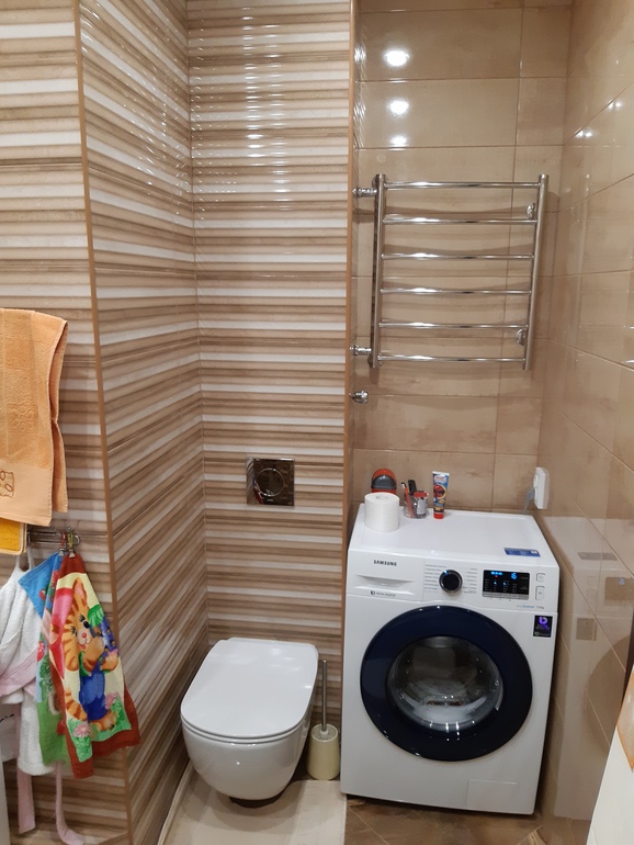 Долго соглашалась на висящий унитаз - как то мне не комфортно было вначале - а вдруг не выдержит))) И как же классно с инверторной машинкой - ничего тебе не пляшет, не скачет и не дребезжит!