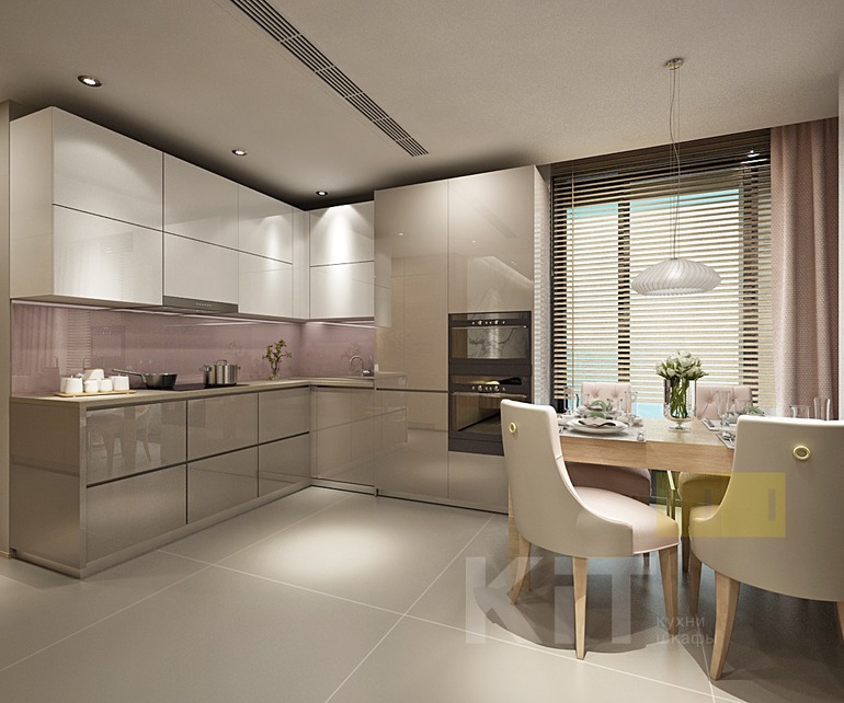 Верхние шкафы мне не очень. Удобно ли будет пользоваться тем шкафом, что в углу? Дотянетесь до него? И как-то... мелкий шкаф, потом огромный, потом прореха с вытяжкой, потом опять огромный... Опять же на Вашем примере верх кухни выглядит совсем по-другому, более цельным.