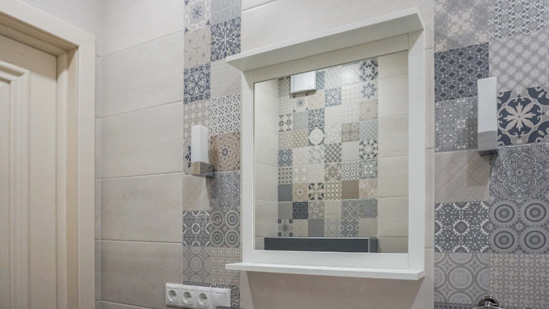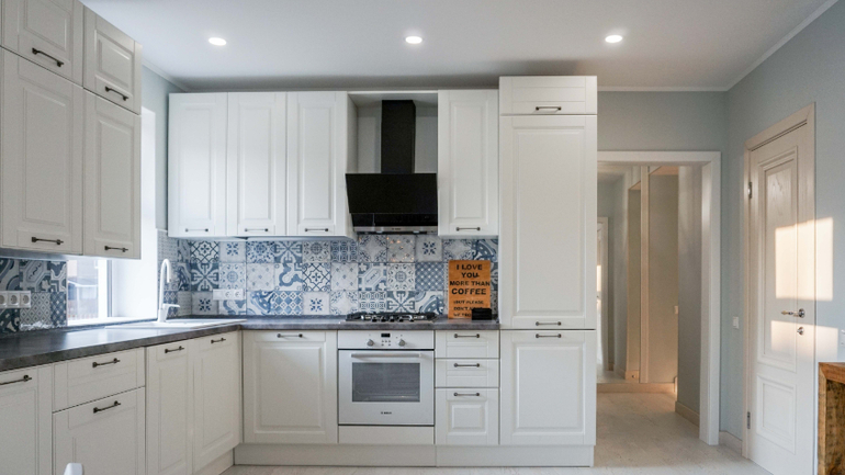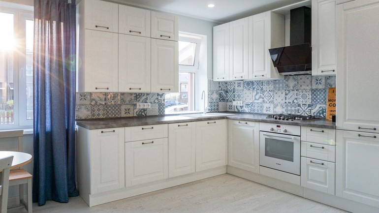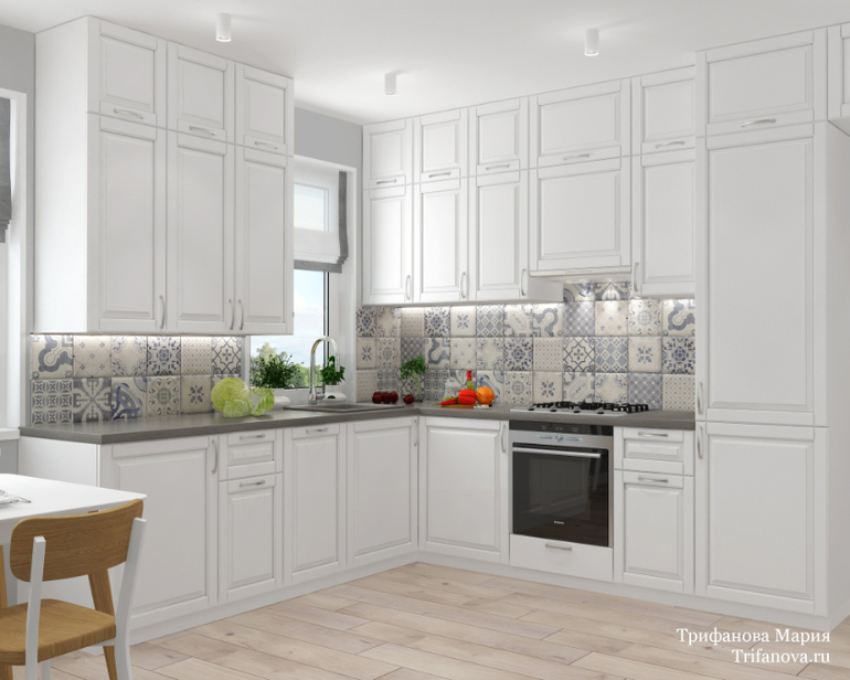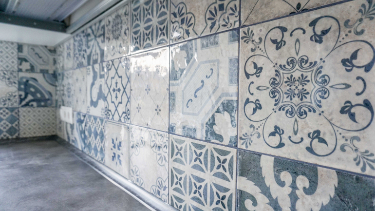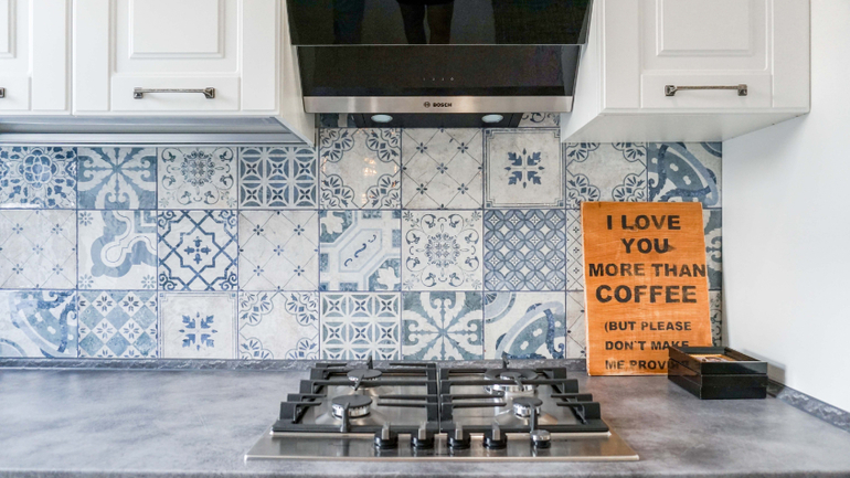 Плитка на кухонном фартуке крупным планом: