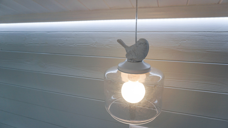 Телевизор еще не занял законное место) По бокам от короба сделана скрытая подсветка. При дневном свете она не очень заметна, но по вечерам будет создавать уютную атмосферу.