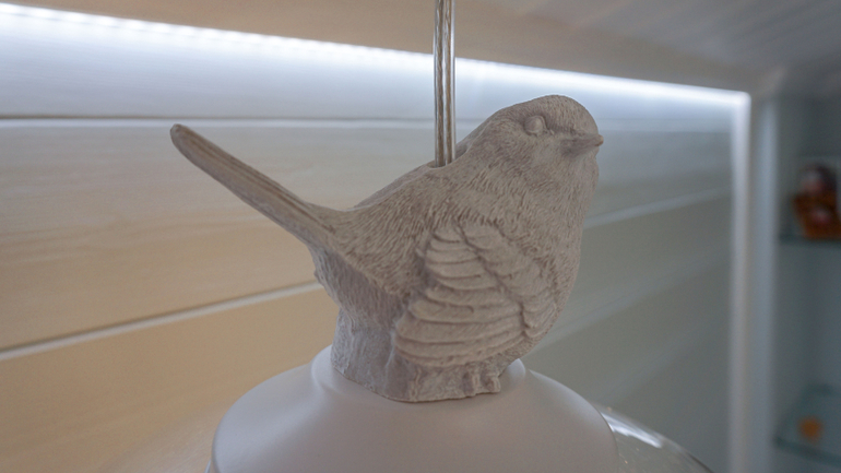 Часы с птицами над диваном еще не приехали на момент съемок. Также кондиционер еще не был установлен.