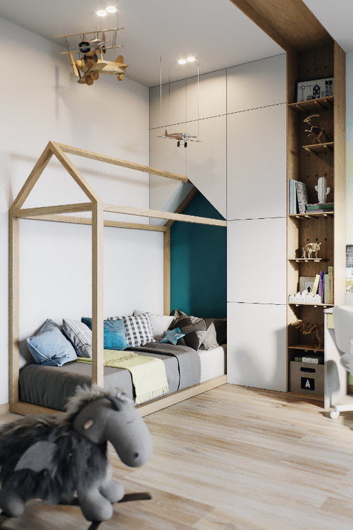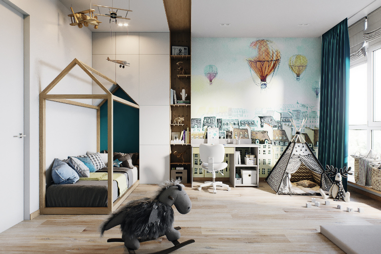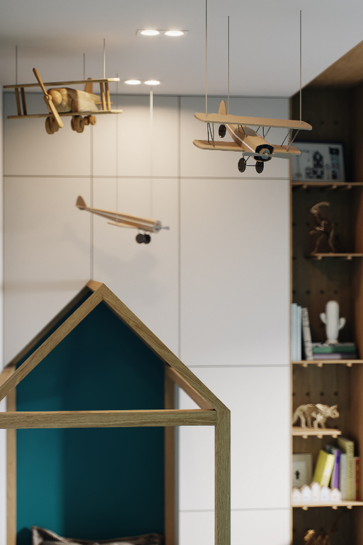 Мне очень понравились спокойные цвета и в то же время комнаты не скучные)) а самолёты над кроватью отлично смотрятся))