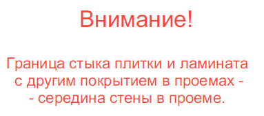 Ламинат и плитка стыкуется только с помощью металлической вставки на уровне пола. Можно их еще стыковать фигурно, например, с гексагоном, но не под дверью санузла.) Чтобы в каждом из этих помещений был виден только один вид напольного покрытия, т.е., чтобы было красиво),стык должен проходить ровно посередине толщины стены в проеме.