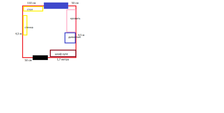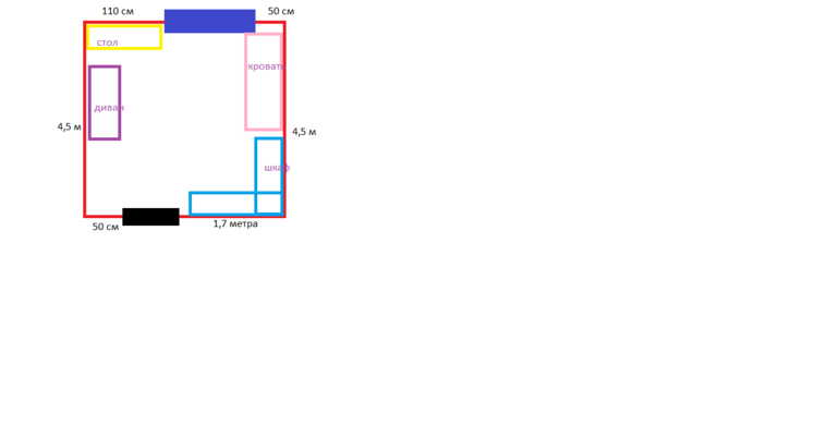 Дано вот такая детская. Синее - окно. Черное - дверь.