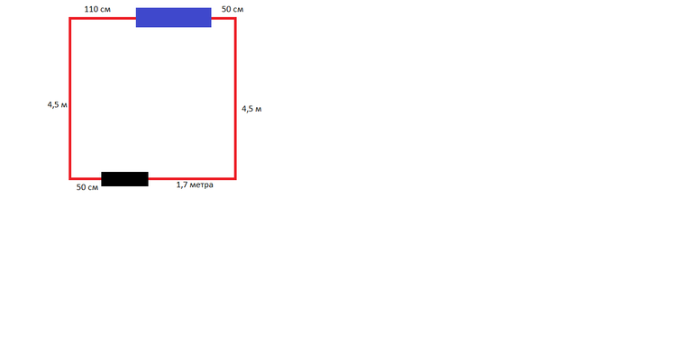 Если плохо видно, стена 4,5 метра. До двери 1,7 метра.