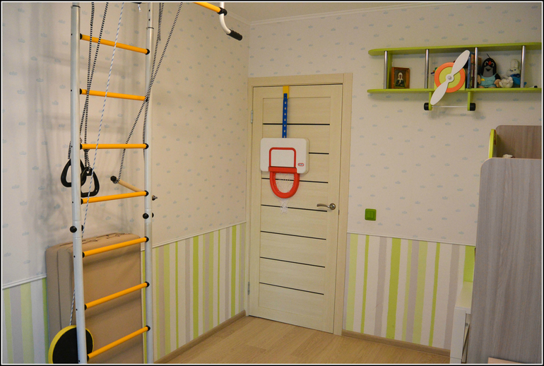 У нас по одной стене будут кровати стоять, а между ними шкаф для одежды шириной 90 см.