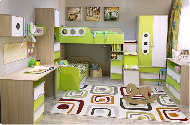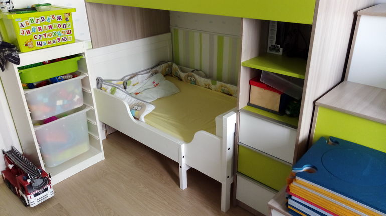 Вы же утром постели заправляете, нижний ярус после этого убирается. В нашем случае это будет обязательно, иначе просто не будет места для игр в детской.