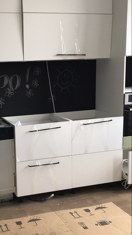 Я кстати вчера в Икеа взяла ещё нажимные механизмы Уруста (арт.40368157), сегодня буду разговаривать с монтажником, чтобы установил их на верхние шкафы , если это возможно. Уж не знаю, как они будут вести себя на шкафу 1м x 1м. Может быть Вы сможете подсказать, если сталкивались.