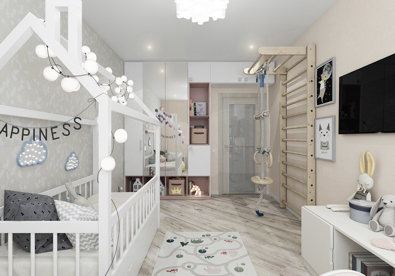Очень мило и удобно для жизни, радует наличие спортивного уголка, которым редко балуют девочек. Мат (спортивный, а не тот, которым некоторые граждане говорят :) ) к нему прилагаться должен обязательно.
