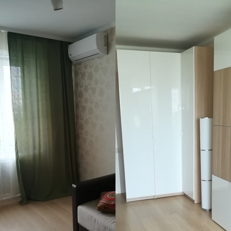 Пакс у дочки в комнате. Тоже хотели делать зеркальные двери по короткой стороне. Но девушка - планировщик убедила сделать зеркальные вот так, в центре шкафа. Так они смотрятся единым целым, а если делать одну сторону зеркальной, то будет выглядеть, как будто два разных шкафа стоят рядом. Как-то так). Нам нравится).