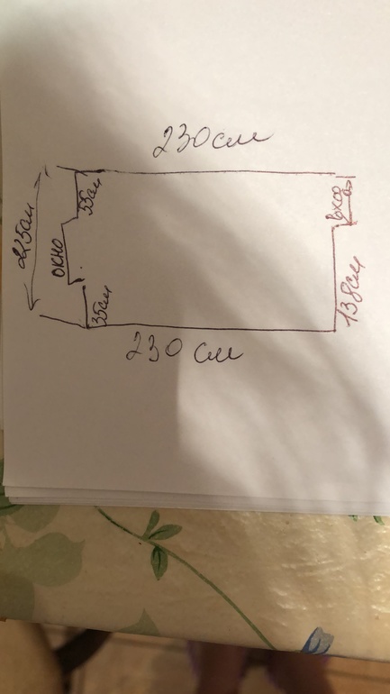 Вопросы и ответыИмеется вот такой план кухни, высота от пола до окна 80 см