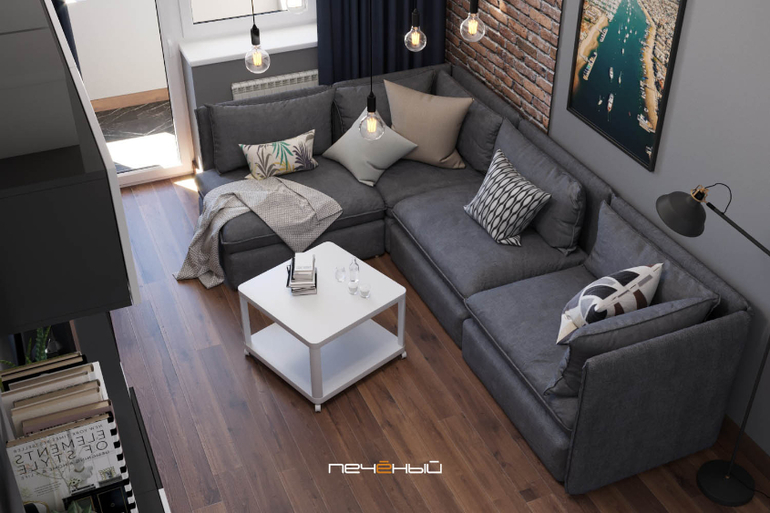 Совет: Не бойтесь серого цвета! Если не по душе такой тёмный, выберите более светлый оттенок. Это отличный базовый цвет, который всегда можно разбавить декором и цветным текстилем: подушками, обивкой, шторами - всё можно легко менять по настроению. С серым обалденно смотрятся деревянные поверхности и зеленые растения, а плюс ко всему, это - отличный фон для фото и селфи! ;)