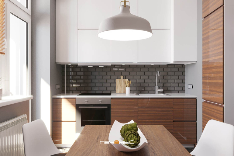 Совет: Верхние и нижние шкафчики кухни вполне могут быть разного цвета. Особенно хорошо это смотрится, если надо "добавить воздуха" верхнему ярусу, а нижними шкафчиками поддержать какой-то акцентный цвет.