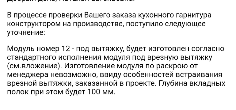 Особенно учитывая, что это ОНА сказала, что шкаф под вытяжку делается в любом случае всегда индивидуально (и денег за него взяли соответственно)