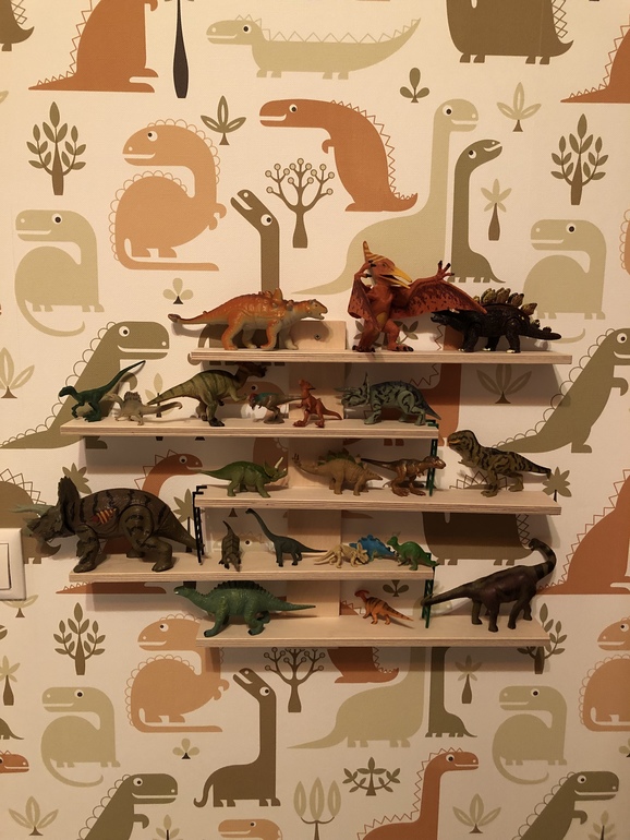 И вот что в итоге получилось. Единого стиля не вышло, потому что «заказчик» выбирал сам. Вышел микс динозавров и джунглей🙈😂