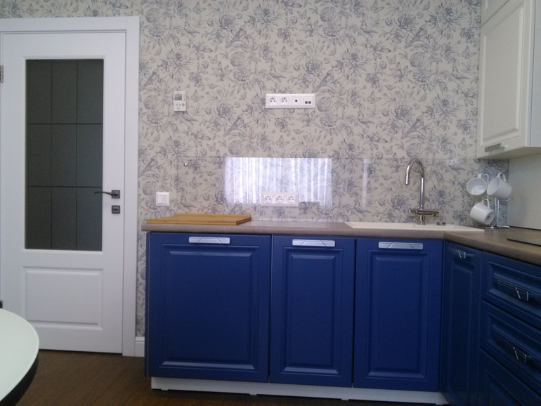 Потом во время ремонта все уперлось в финансы и в итоге мой фартук просто покрашен грифельной краской) Но я все еще хочу прозрачное стекло и обои за ним)