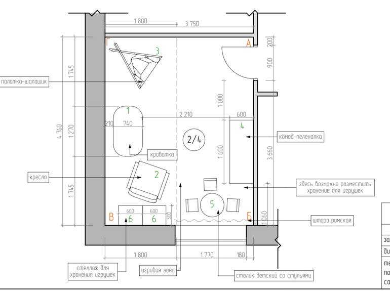 Спасибо за схему. У меня чуть поменьше комната 3×4, скос точно как у вас. А вы шкаф для вещей ставить не будете? Я вот думаю по поводу небольшого шкафчика... место для кроватки также как у вас запланировано.