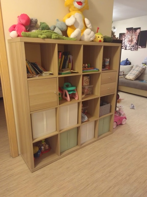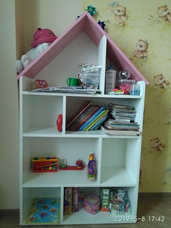 Сначала была огромная стенка для игрушек в виде замка. До определенного возраста заменяла мне и полку для игрушек, и шкаф для одежды. Потом игрушек и одежды как-то незаметно стало чуть больше, чем много и все превратилось в бардак. Сейчас поставили отдельно шкаф для одежды (моя гадебопная😂) и маленький стеллаж "по Монтессори" для игрушек. Количество игрушек ограничиваю только этим стеллажом. Стало намного больше порядка, дочь охотнее убирает за собой все по местам.