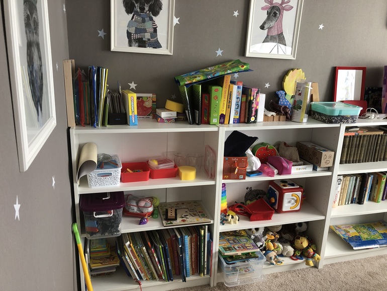 У меня билли, как вы говорите «по монтессори», выглядит вот так (после уборки выглядит куда лучше, но фото только такое)):