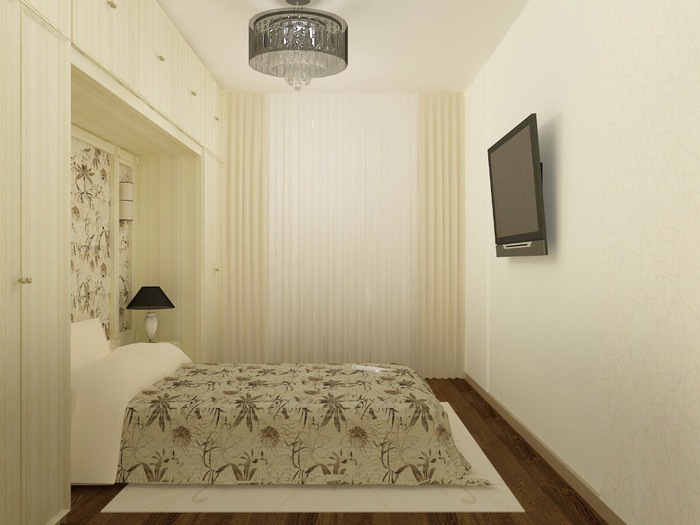 Кровать (можно и 140 впринципе не маленькая) тв не хочу в спальне. Комод не помешал бы, шкаф уже есть, как большинство и рекомендовало. Ещё думаю над антресолью.