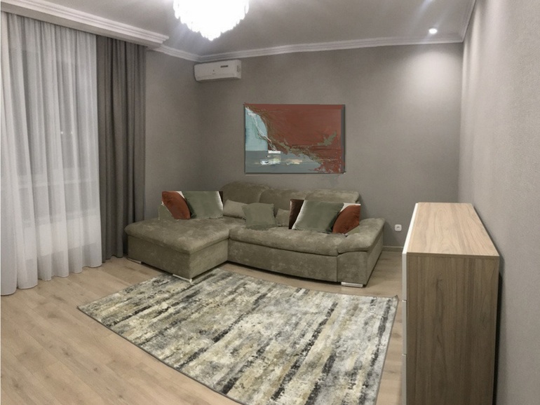 Можно добавить жёлтые подушки + белый журнальный столик с золотыми ножками, добавит тепла интерьеру как мне кажется💛