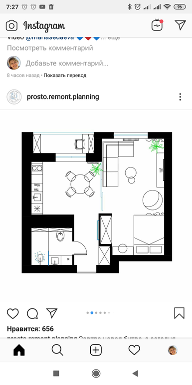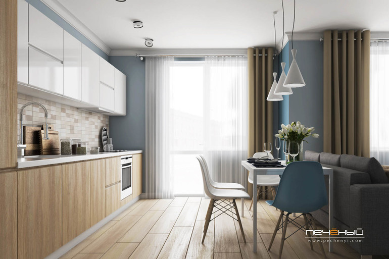 Ну в однушке тоже далеко не уйдёшь)). Так, чтобы с комфортом. На кухню на стульчик сидеть, тоже не супер. А на счёт спальных мест, при такой идее, как у вашего мужа, кровать как раз в глаза не бросается. Посмотрите, в инете куча подобных картинок. Просто кухня 11 метров, как просто кухня в однушке - это много для неё, жалко. А как кухня-гостиная, так 11 метров мало.