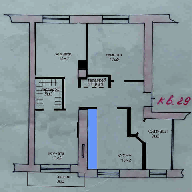 Квартира, как у моей мамы. От входа у них кухня, потом ванная, потом комната с балконом. Изначально с/у был раздельный, был коридорчик, как у вас на оном ид планов, и ванна вдоль окна. Снесли эту конструкцию, сделали совмещённый с/у, построили новую стену, расширив немного кухню за счёт ванной. Ванная комната один фиг огромная, в футбол в ней можно играть. Коридорчики эти крохотные городить - вообще тоска.