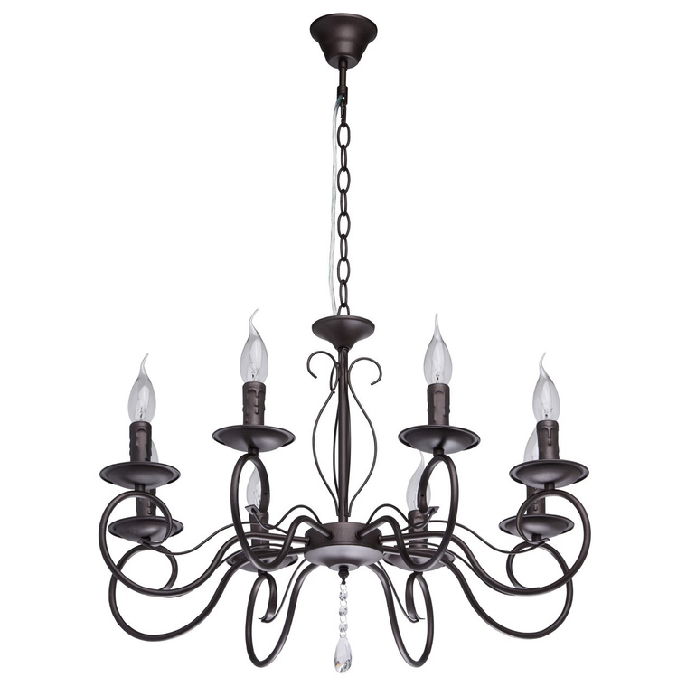 А люстру не думали кованую вешать? По-моему, к кирпичу будет более подходящий вариант.