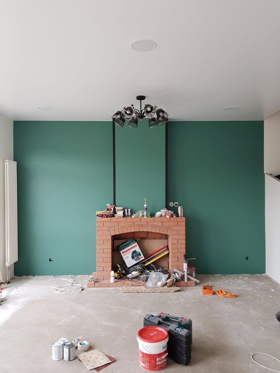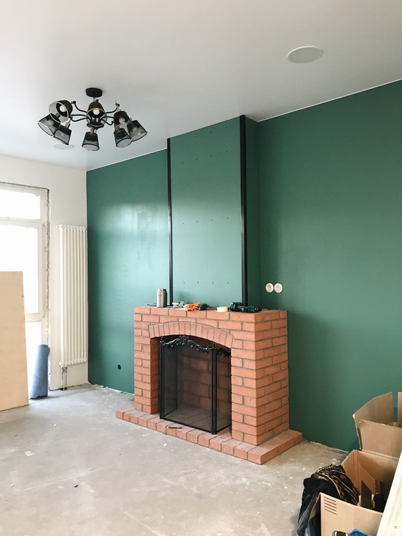 Вообще, на мой вкус, я бы короб за камином делала шириной с сам камин, а не меньше.