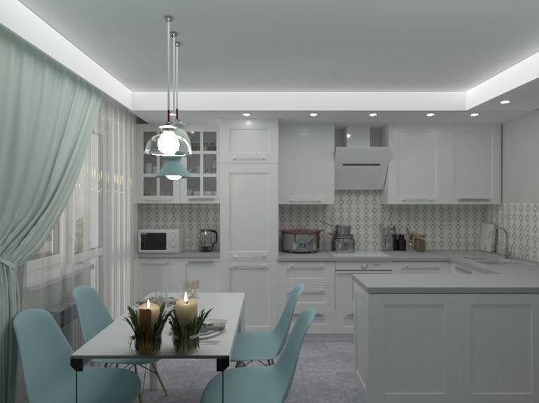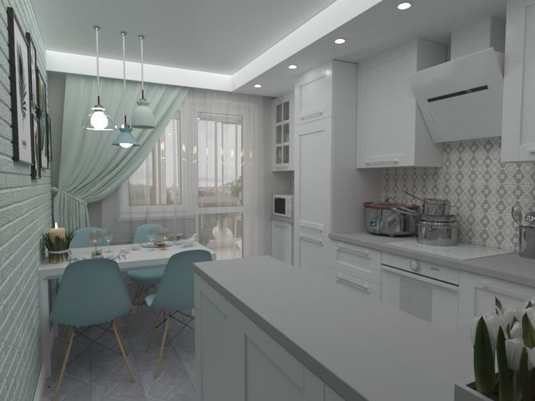 Еще у меня вопрос относительно полуострова. Он Вам точно нужен? Мне кажется, он не очень помещается на данной площади - обеденный стол очень близко (если кто-то сидит спиной к выходу, так и вовсе на кухню никому больше не зайти. Нужно либо вставать и пропускать входящго, либо входящему перелезать через полуостров)), да и обходить его каждый раз, как нужно к кухонному фронту подойти, когда можно это было бы сделать напрямую - не будет ли подбешивать со временем?